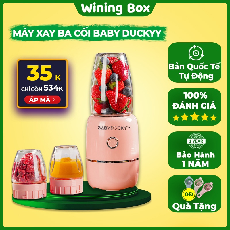 Máy Xay Đa Năng 3 Cối Baby Duckyy Máy Xay Thịt Sinh Tố Mini ăn dặm cho bé Chính Hãng Winingbox Bảo Hành 12 Tháng free ship