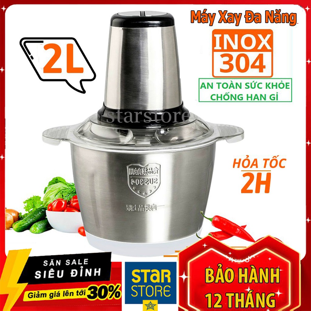 Máy Xay Thịt Cầm Tay Cối Inox Đa Năng 4 Lưỡi Công suất 300W Xay Cua Cá, Tỏi Ớt, Rau Củ Quả free ship