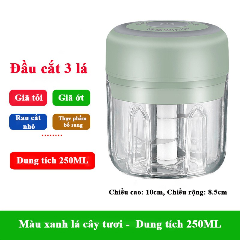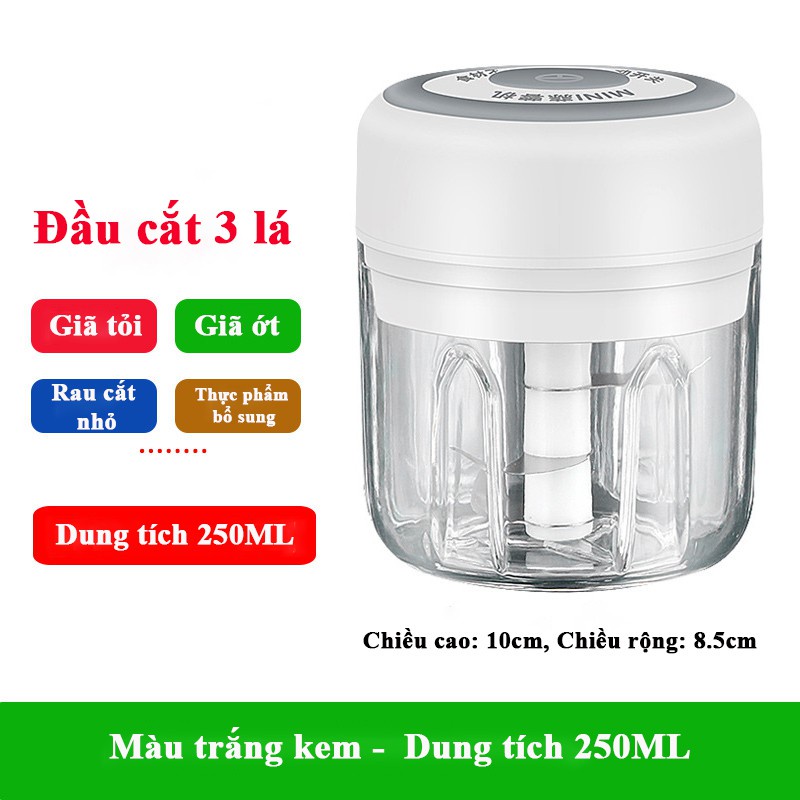 🎃Mẫu Mới🎃 Máy Xay Tỏi Ớt,Xay thịt,Xay Đồ Ăn Dặm Cho Bé Đa Năng Mini Cầm Tay Sạc Điện Cổng USB 100ml 250ml Combo 2 in 1 free ship